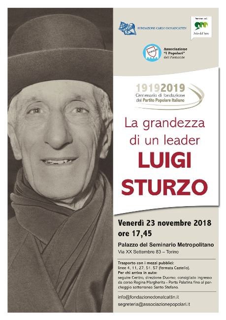 Domani, venerdì 23 novembre, si terrà a Torino il primo appuntamento del ciclo di iniziative organizzato dall'Associazione “I Popolari” del Piemonte e dalla Fondazione “Carlo Donat-Cattin” per celebrare il Centenario di fondazione del Partito popolare italiano.