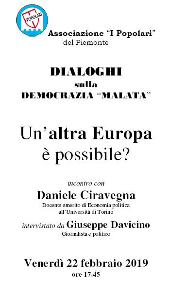 Venerdì 22 febbraio, dalle 17.45 all’Educatorio della Provvidenza (corso Trento 13 – Torino) si terrà l’incontro dal titolo “Un’altra Europa è possibile?”.