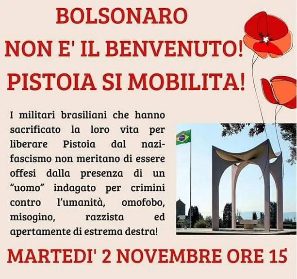 A Pistoia – fortunatamente tenuti a distanza dal cimitero evitando una possibile gazzarra che avrebbe oltraggiato la memoria dei caduti – tutte le sigle antifasciste erano presenti per contestare Bolsonaro: ora a me pare che questo sia controproducente perché in quel cimitero si ricordavano persone morte per davvero per combattere il nazifascismo. Per nulla apprezzabile anche il comunicato del Presidente della Regione Toscana che si felicitava per la mancanza di politici e autorità ad accompagnare il presidente brasiliano. Eccezion fatta per Salvini che non ha mancato l’occasione per comparire. Nella stampa italiana ben pochi hanno stigmatizzato l’accaduto: tra loro Paolo Mieli, storico ed ex direttore del “Corriere della Sera” che in un intervento su Radio24 ha rimarcato il nonsenso di una contestazione in quel momento.